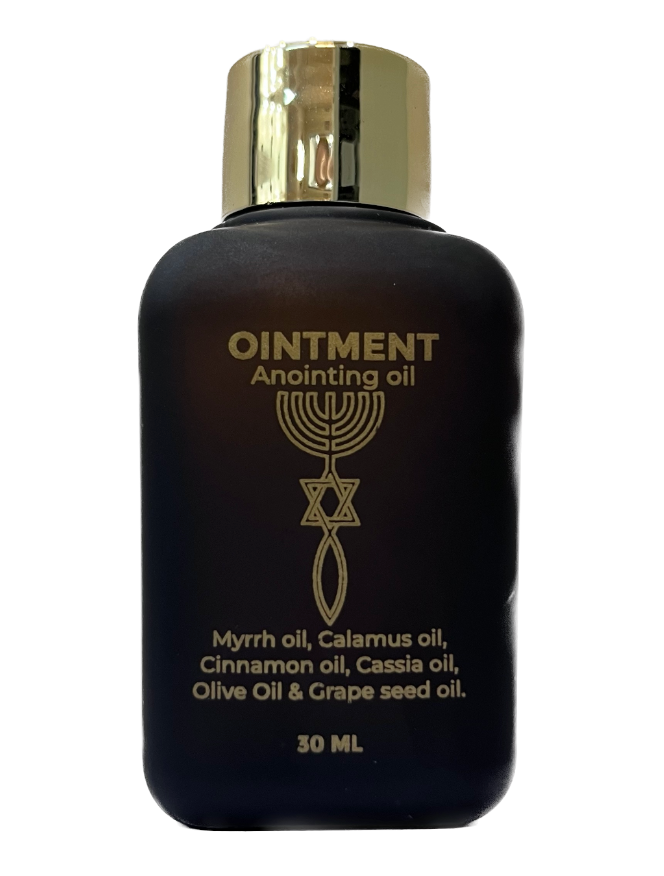 A 30ml anointing oil, a blend of Myrrh, Calamus, Cinnamon, Cassia, Olive, and Grape Seed Oils. This version of the holy anointing oil is referenced in the books of Exodus: 30:22-25, and James: 5:14.