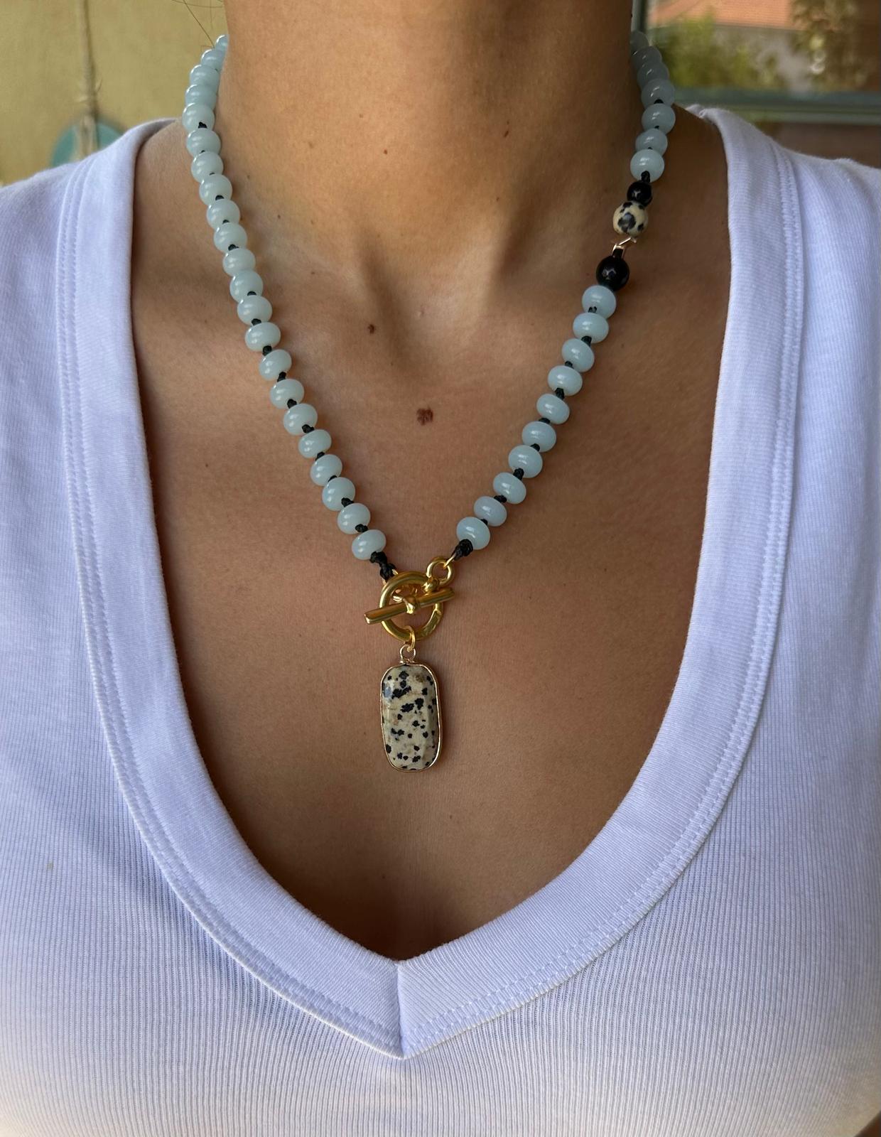 This unique design contains Agate stone with 24-karat gold plated jasper pendant! Perfect for a casual evening out or a special occasion where you want to make a statement.