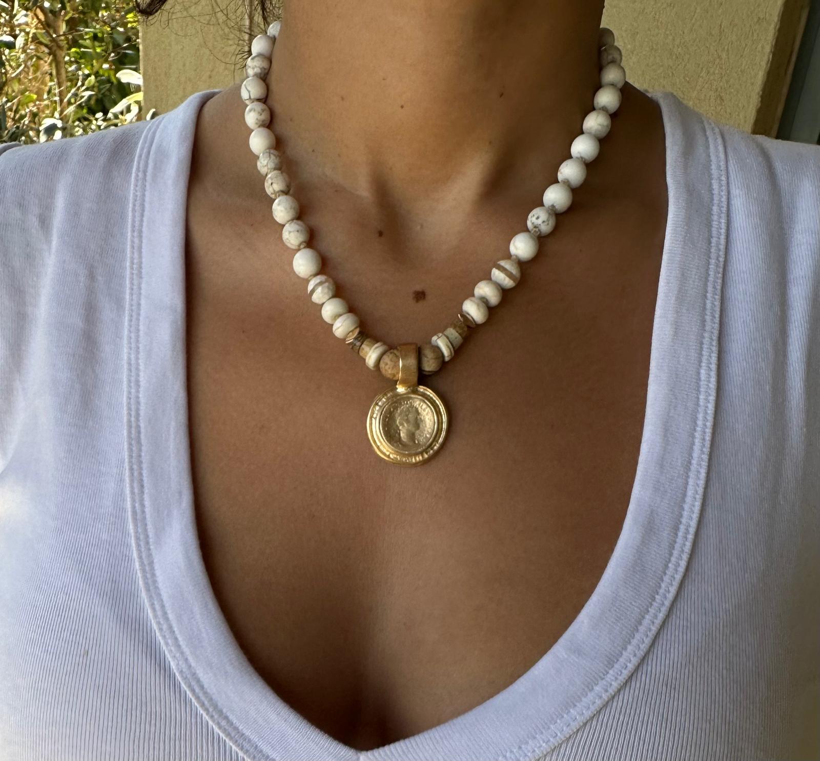 White Hailo with additional stones and a beautiful circle gold pendant.
