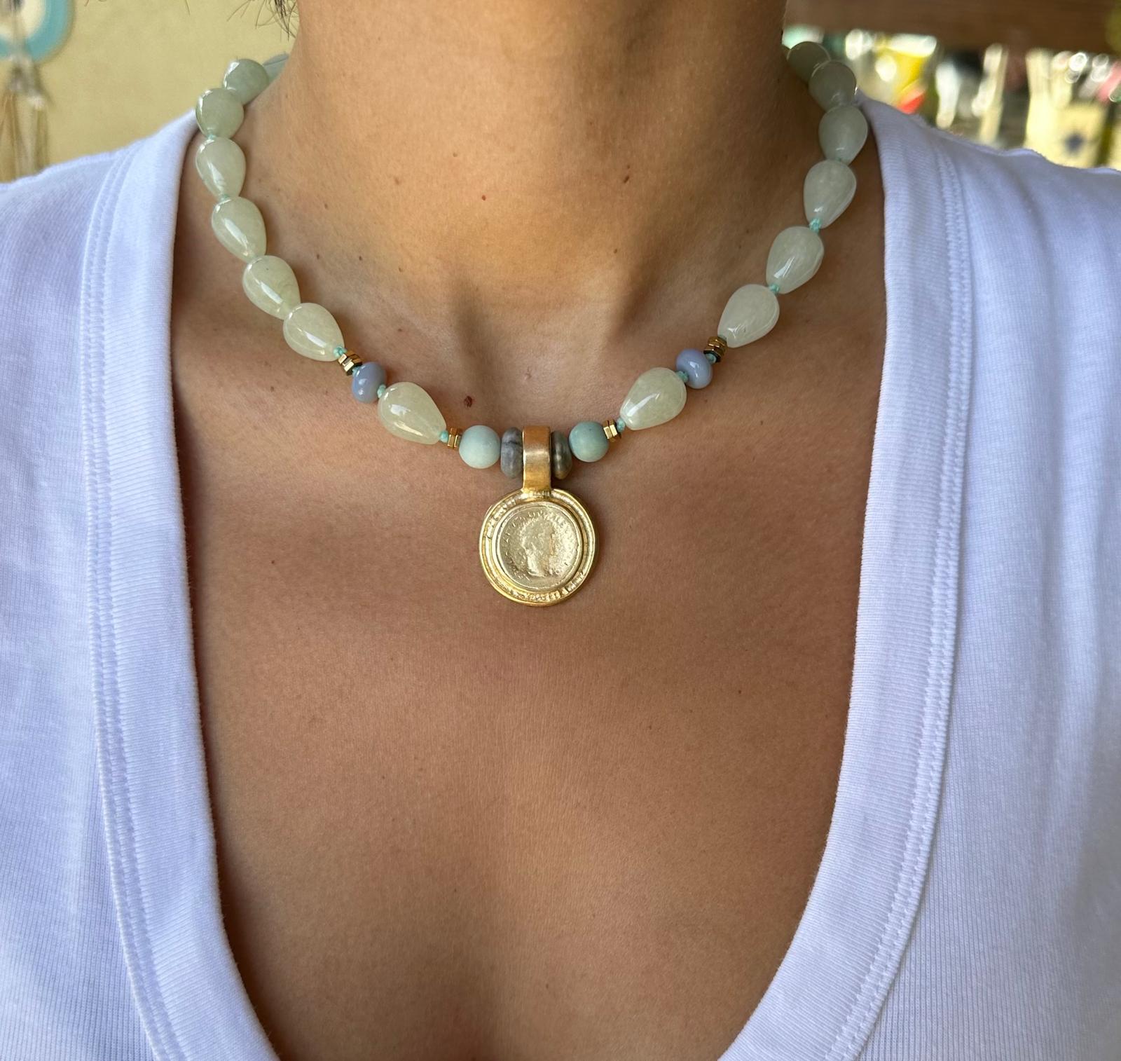 This Jade Beads with 24-karat plated gold necklace is perfect for any occasion, this necklace effortlessly combines style and elegance, making it a must-have addition to your jewelry collection.