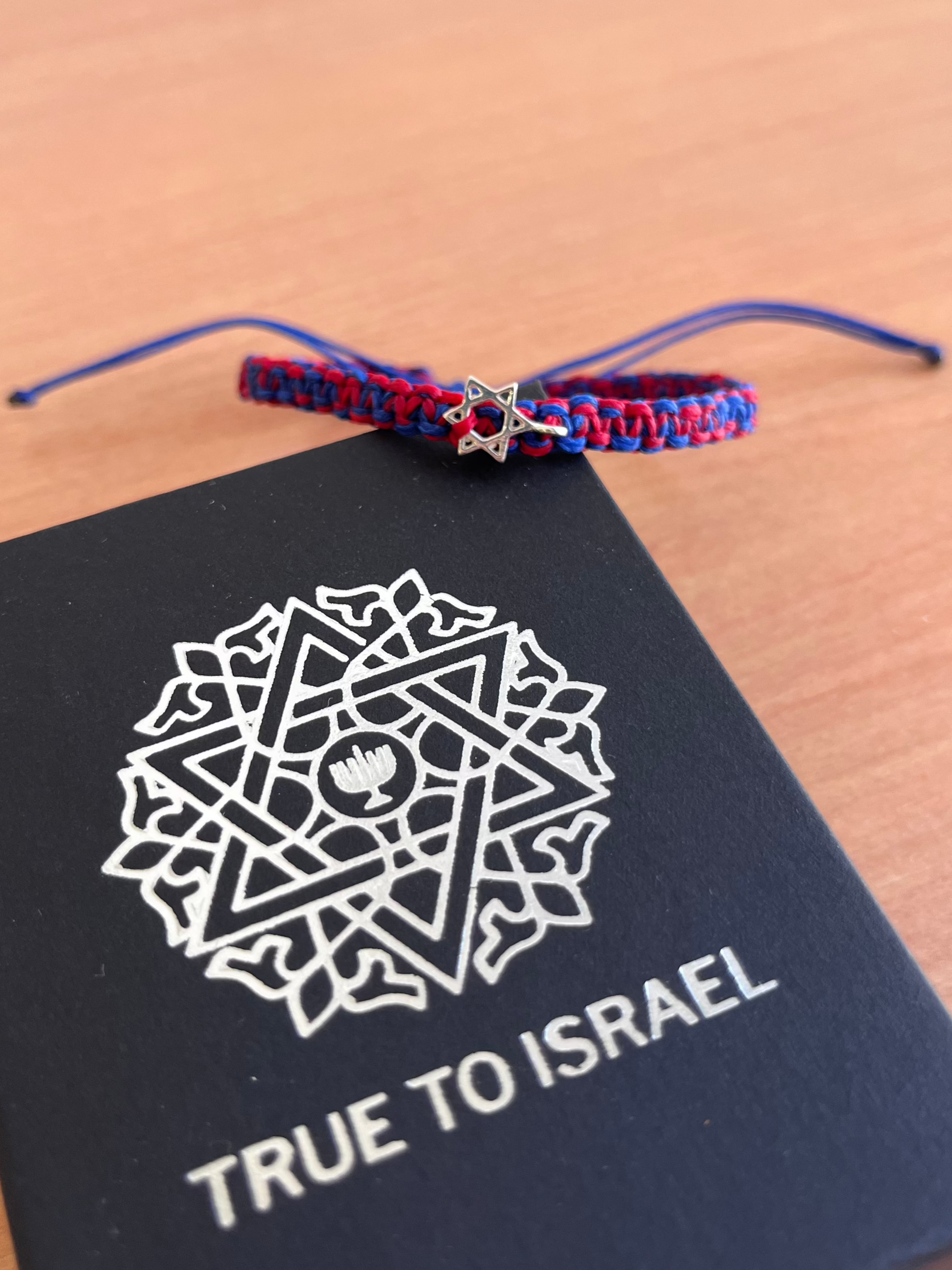 Our Star of David bracelet is a striking symbol of faith, strength, and solidarity with Israel. This beautiful piece features a silver Star of David, meticulously crafted to capture the timeless essence of Jewish identity. The bracelet band consists of vibrant blue and red material, adding a touch of elegance and significance to its design. Produced in Israel, this bracelet is more than just a piece of jewelry—it is a powerful statement of support for Israel and the values it represents.