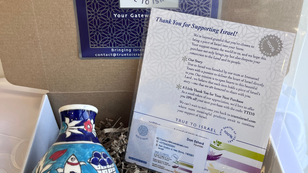Take a moment to explore our unique True to Israel products, each thoughtfully crafted with love and care in the heart of Israel.