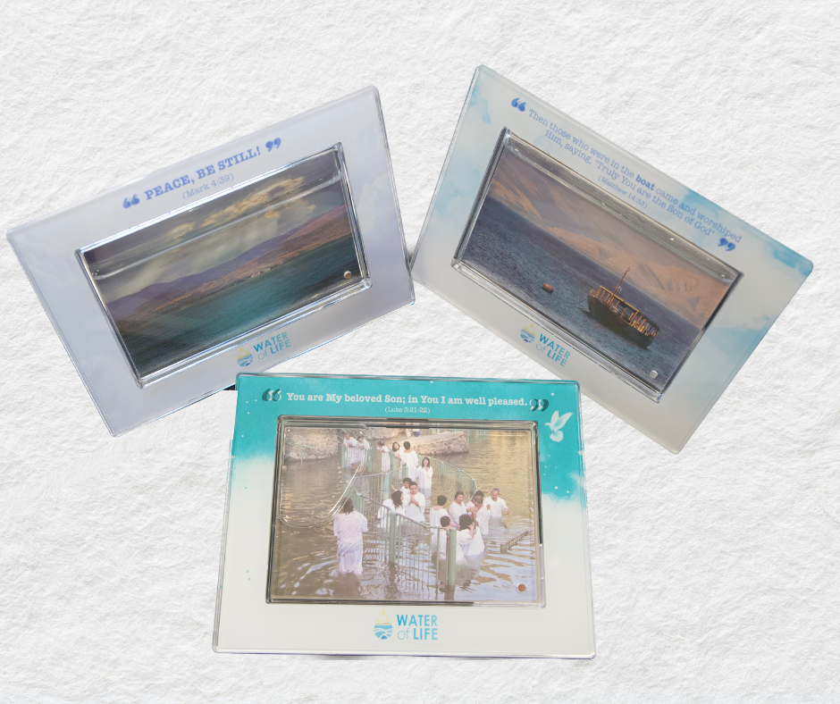 Our Water of Life frames are more than just beautiful decorative pieces; they are symbols of faith and devotion. Each frame, meticulously crafted in Israel, contains water from the River Jordan—the site where Jesus was baptized by John the Baptist, as described in Matthew 3:13. This connection to a crucial moment in Christ’s life covers our frames with spiritual significance that transcends their physical beauty, making them extraordinary gifts that resonate deeply with those who receive them.