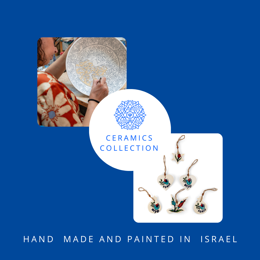 サンルーニ アルメニア セラミック センターでは、イスラエルの真髄を美しく表現した手作り品を厳選して提供しています。各作品は粘土で作られ、イスラエルの有名なザクロ、ハート、その他の意味深い形など、象徴的なシンボルに丁寧に形作られています。これらの作品が本当に特別なのは、イスラエルの豊かな文化と伝統から思慮深くインスピレーションを得た、精巧な手描きのデザインです。