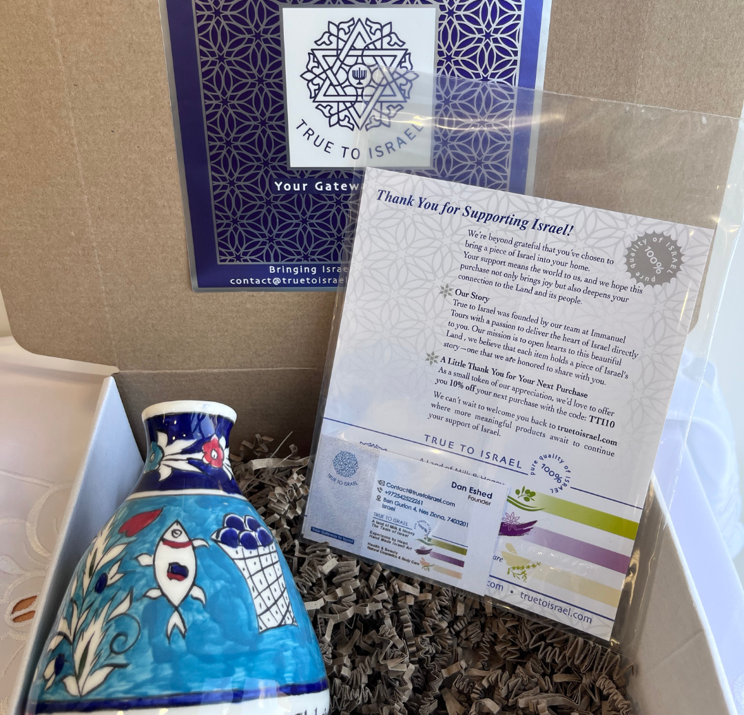 これらの商品を購入することで、イスラエルのユニークな一品を自宅に持ち込むだけでなく、イスラエルの職人や企業を支援することにもなります。ジョージとドリンの作品は、伝統的なアルメニア陶器の永続的な遺産の証であり、彼らの店はエルサレムのキリスト教徒コミュニティの活気ある一部です。彼らの陶器は単なる製品ではなく、信仰、愛、文化遺産の象徴です。
