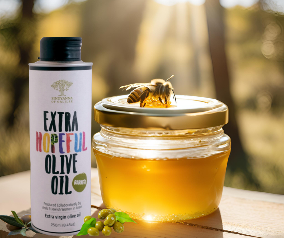 Our Olive Oil of Hope is more than just oil—it’s a movement. Cold-pressed from olives grown in the Galilee, it is produced by Jewish and Arab women working together in partnership. Every drop reflects their shared commitment to peace, coexistence, and sustainable agriculture. It’s a symbol of unity in a divided world, and a reminder that healing can begin with something as simple—and profound—as working the land together.
